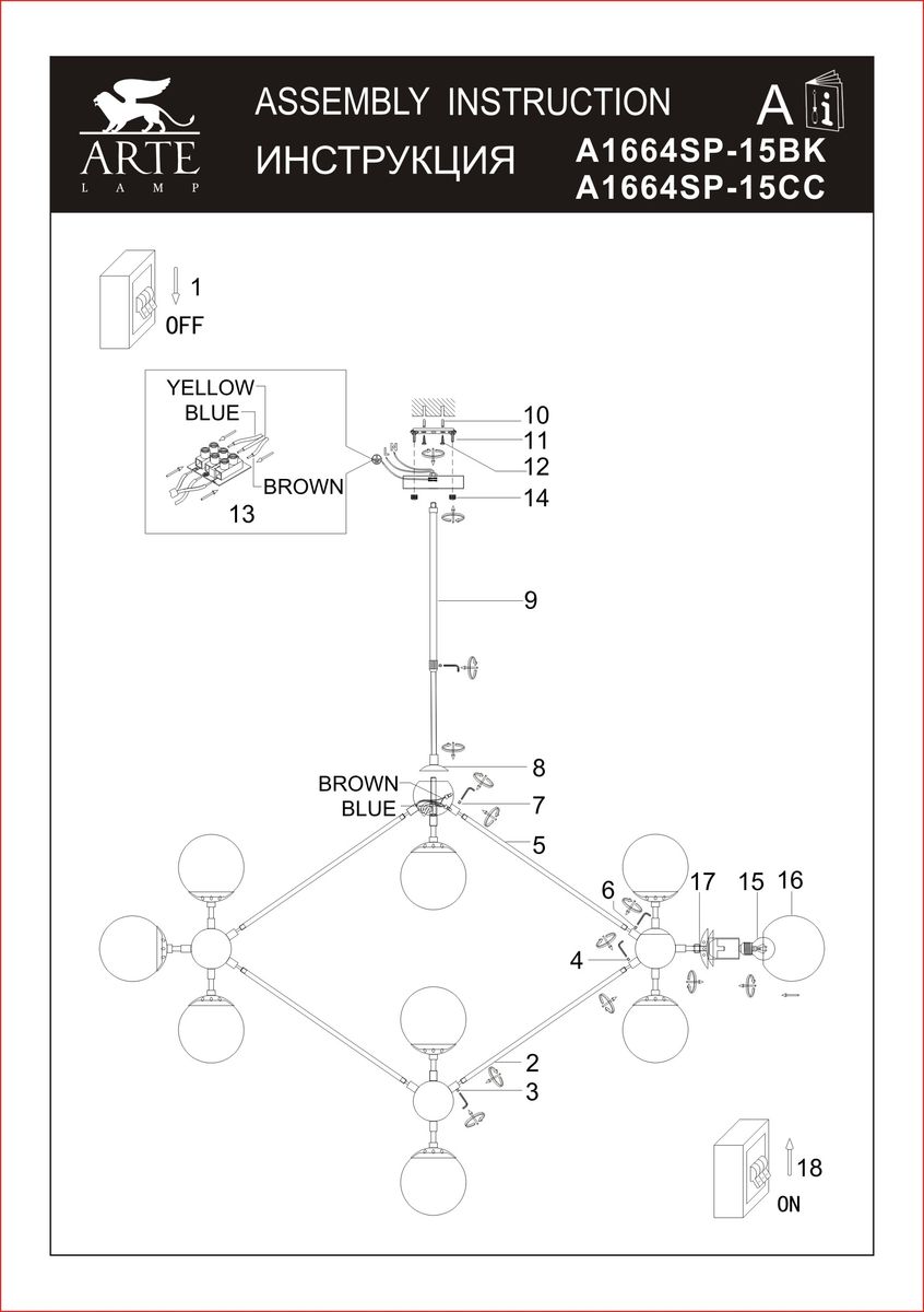 Подвесная люстра Arte Lamp Bolla A1664SP-15BK