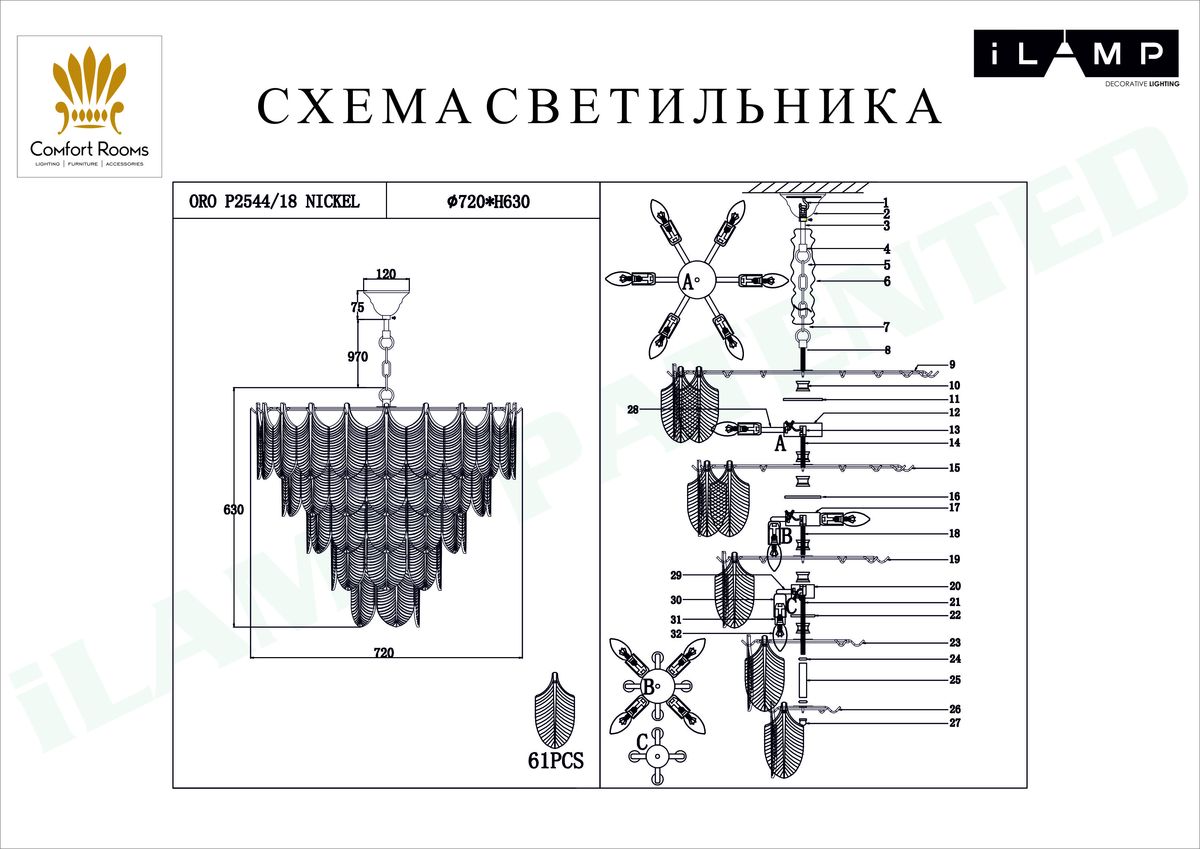 Подвесная люстра iLamp Oro P2544-18 NIC