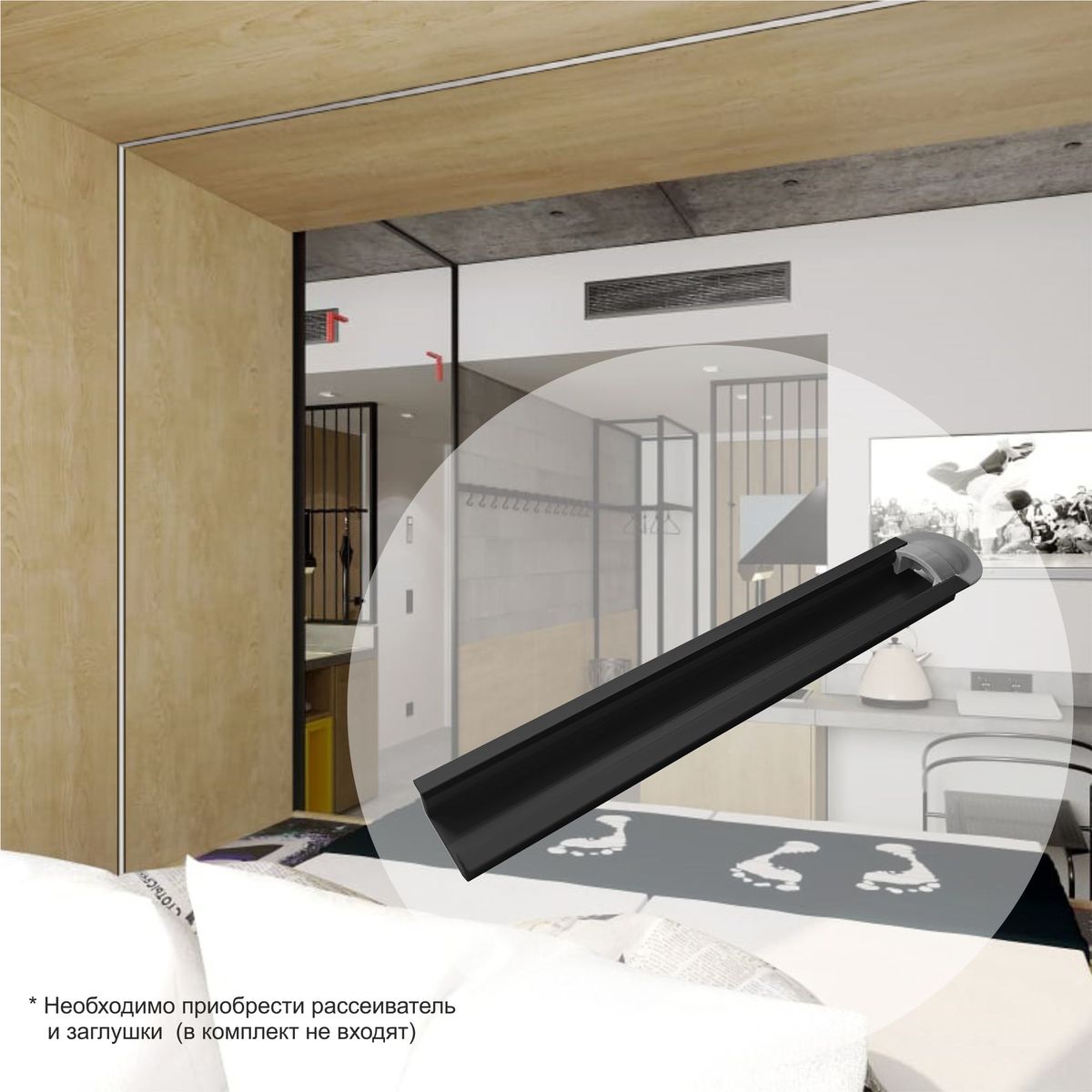 Профиль встраиваемый черный 2м. Apeyron 08-02-01Ч