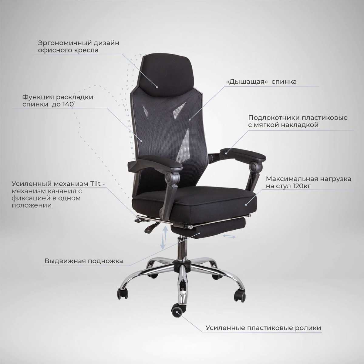 Офисное кресло AksHome Adrian чёрный, сетка 69999