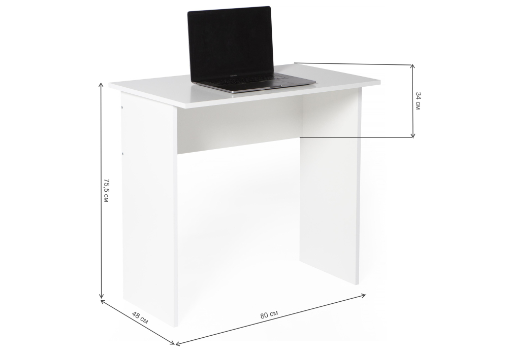 Письменный стол от бренда Woodville с артикулом 320036 c основанием из ЛДСП и прямоугольной столешницей из ЛДСП станет незаменимым дополнением для интерьера спальни в современном стиле. Российский товар белого цвета с шириной в 80 см, глубиной в 48 см и высотой 75.5 см и не оборудован ящиками. Конструкция с двумя ножками без колес не регулируется по высоте. У модели нет полки. Письменный стол Woodville Kiwi 320036 поставляется по цене 2500 RUB и доставляется в кратчайшие сроки по Москве и всей России. Изучите отзывы пользователей, фото и характеристики и делайте заказ в интернет-магазине Вамсвет.