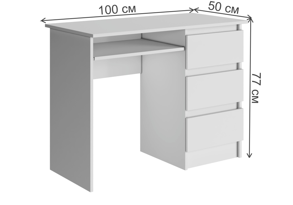 Письменный стол от бренда Woodville с артикулом 540702 c основанием из ЛДСП и прямоугольной столешницей из ЛДСП станет незаменимым дополнением для интерьера офиса в современном стиле. Российский товар белого цвета с шириной в 100 см, глубиной в 50 см и высотой 77 см и оборудован ящиками. Конструкция без колес не регулируется по высоте. У модели есть полка. Письменный стол Woodville Косео 540702 поставляется по цене 6330 RUB и доставляется в кратчайшие сроки по Москве и всей России. Изучите отзывы пользователей, фото и характеристики и делайте заказ в интернет-магазине Вамсвет.