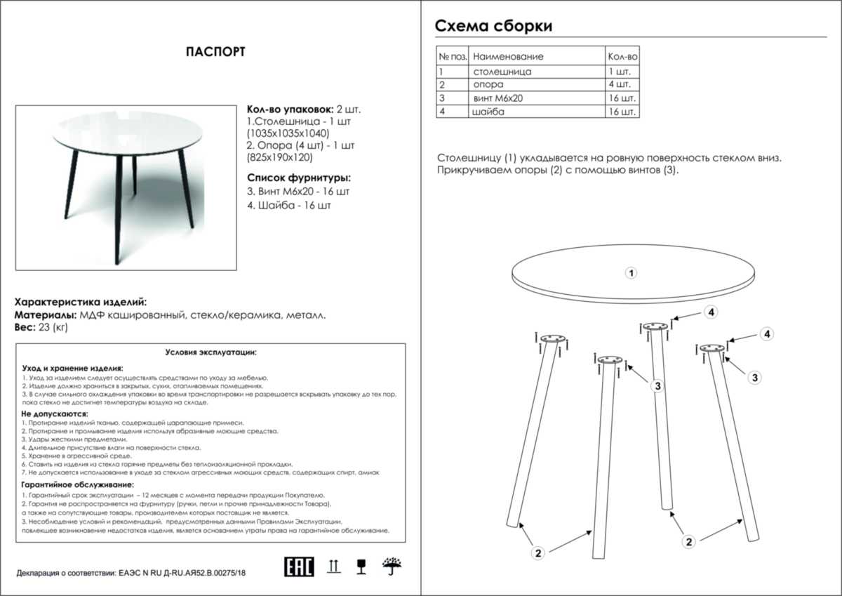 Конструкция стола