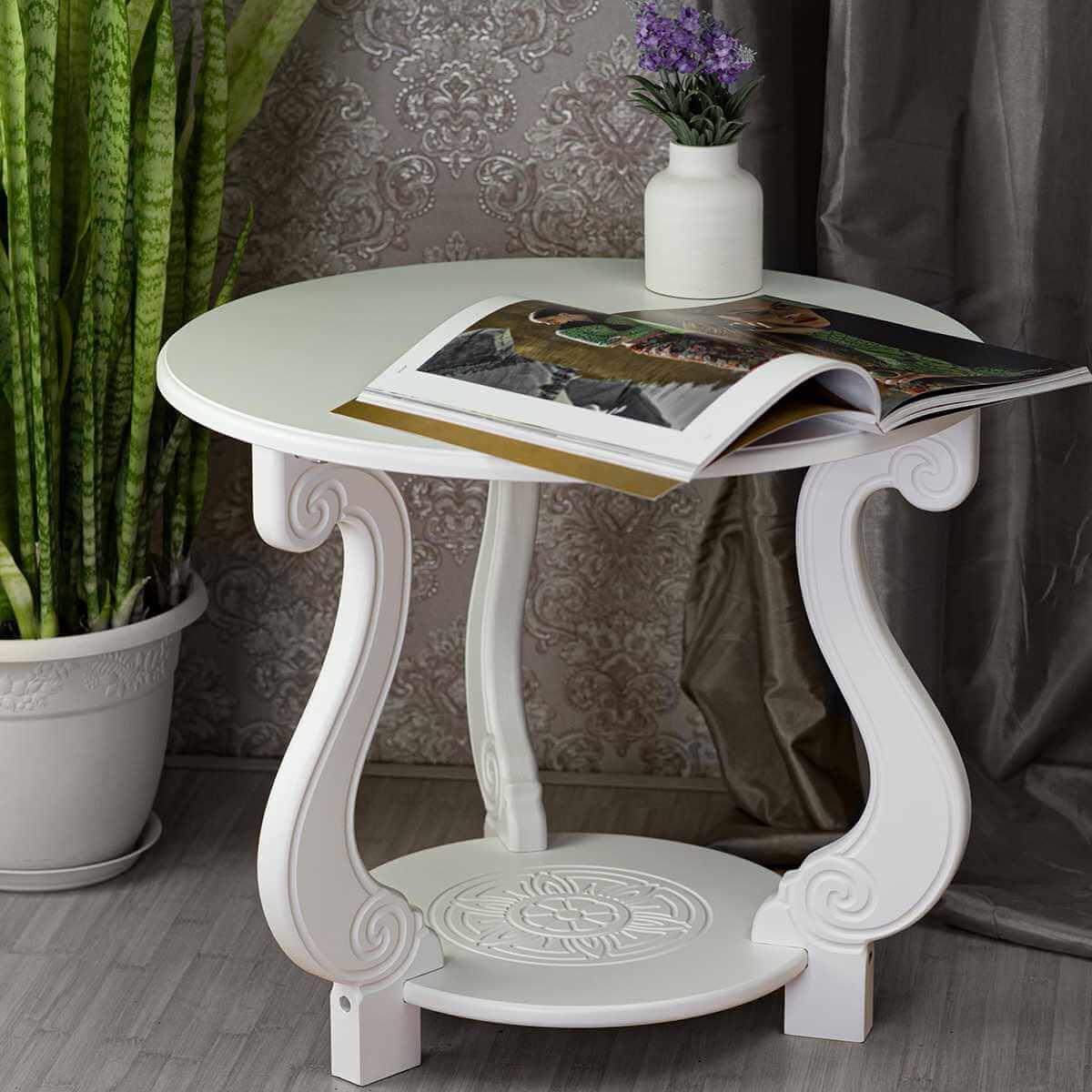Журнальный стол от бренда Мебелик с артикулом 008134 c основанием из МДФ и круглой столешницей из МДФ станет незаменимым дополнением для интерьера гостиной в классическом стиле. Российский товар белого цвета диаметром 58 см и высотой 53 см и не оборудован ящиками. Конструкция с тремя ножками без колес не регулируется по высоте. У модели есть полка. Журнальный стол Мебелик Грация (М) Лайт 008134 поставляется по цене 8398 RUB и доставляется в кратчайшие сроки по Москве и всей России. Изучите отзывы пользователей, фото и характеристики и делайте заказ в интернет-магазине Вамсвет.