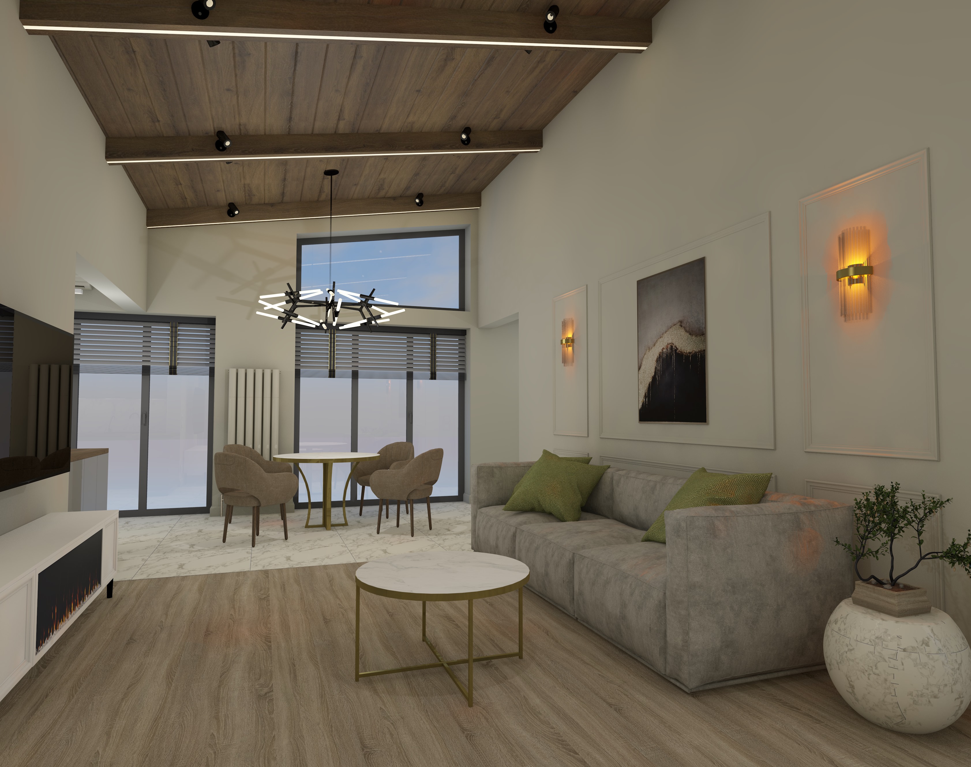 Создано комфортное пространство для жизни членов семьи в любимой цветовой гамме и фактурах.